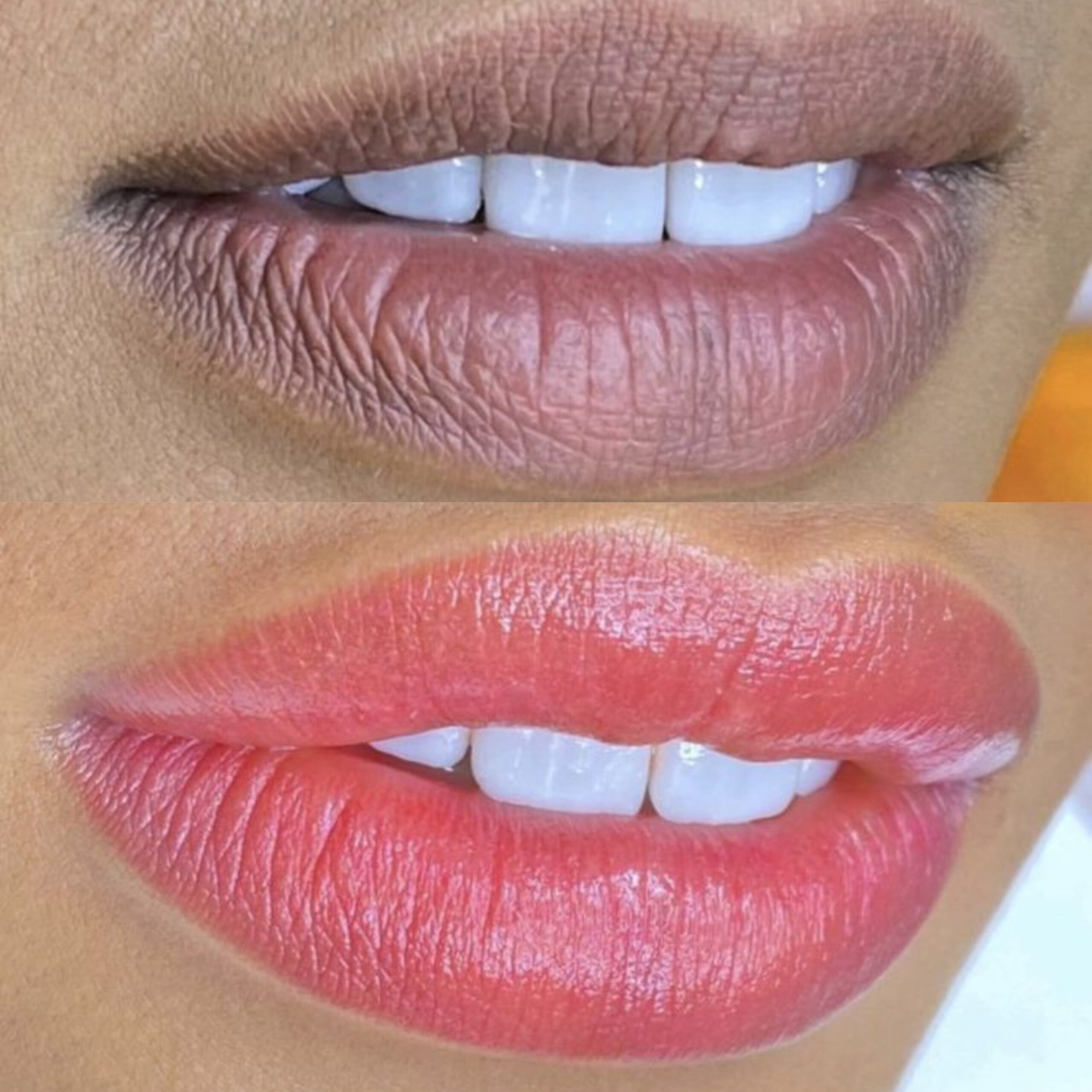 It involves depositing neutralising ink pigments into the lip area to balance darker tones and enhance the natural lip colour, shape, and symmetry. The treatment creates a subtle, rather than saturated, effect to ensure natural-looking results.