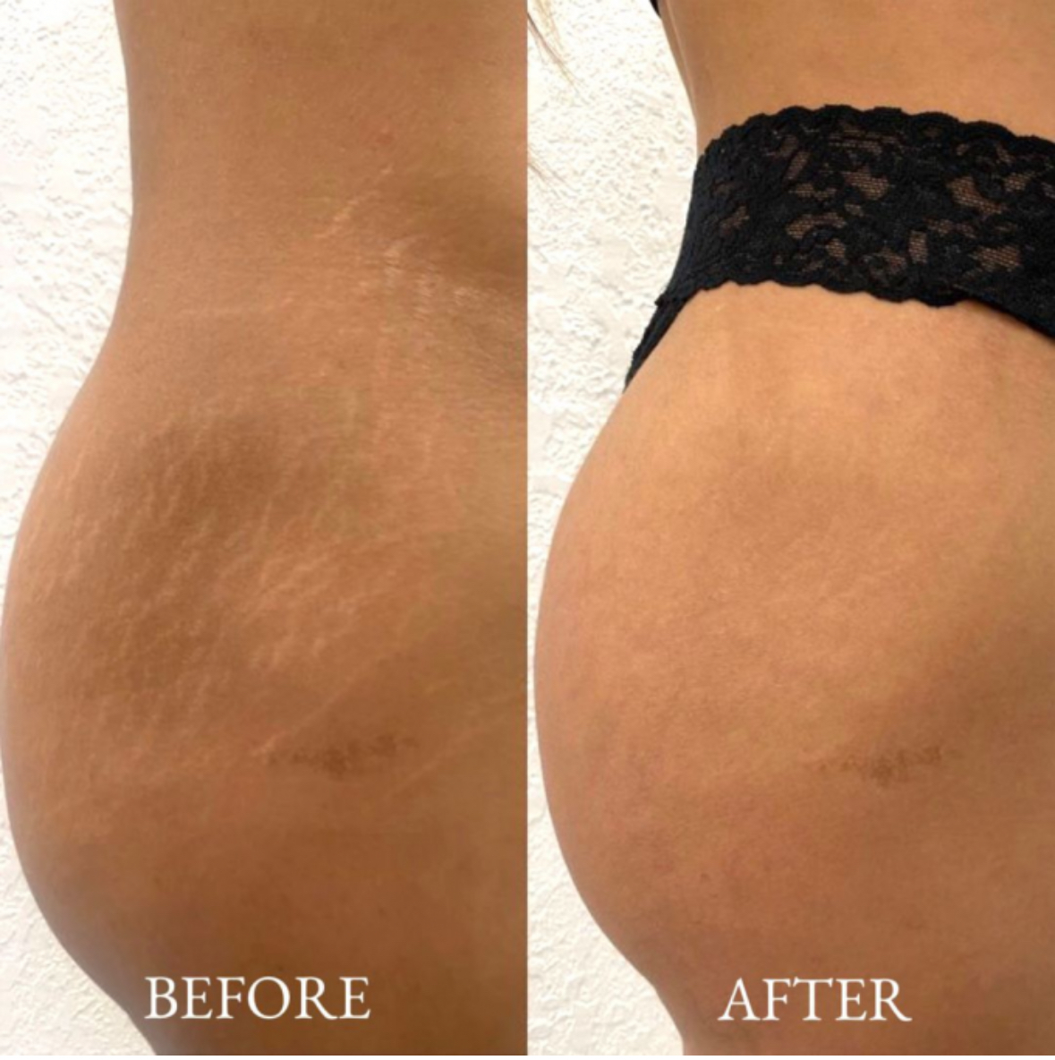 Once the treated area is completely healed it will improve appearance, texture and the tone of your stretch marks. Clients usually see 20-80% improvement after the first session; however results vary per person as our individual bodies heal differently. Please note that more than one session is needed for optimum result.